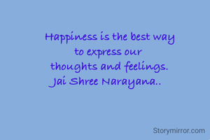 Happiness is the best way to express our thoughts and feelings. Jai Shree Narayana..