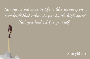 Having no patience in life is like running on a treadmill that exhausts you by it's high speed that you had set for yourself.