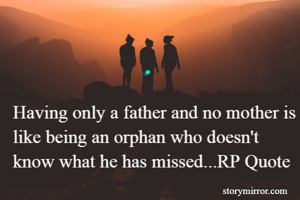Having only a father and no mother is like being an orphan who doesn't know what he has missed...RP Quote