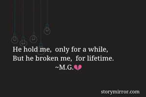 He hold me, only for a while, But he broken me, for lifetime. ~M.G.💔