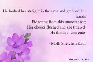He looked her straight in the eyes and grabbed her hands Fidgeting from this innocent act; Her cheeks flushed and she tittered He thinks it was cute - Molli Sherchan Kaur