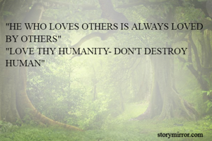 "HE WHO LOVES OTHERS IS ALWAYS LOVED BY OTHERS" "LOVE THY HUMANITY- DON'T DESTROY HUMAN"