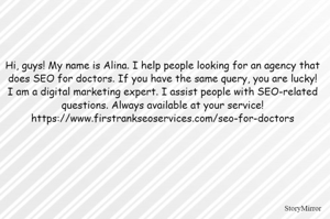 Hi, guys! My name is Alina. I help people looking for an agency that does SEO for doctors. If you have the same query, you are lucky! I am a digital marketing expert. I assist people with SEO-related questions. Always available at your service!