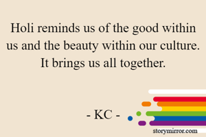 Holi reminds us of the good within us and the beauty within our culture. It brings us all together. - KC -