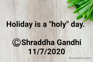 Holiday is a "holy" day. ©️Shraddha Gandhi 11/7/2020