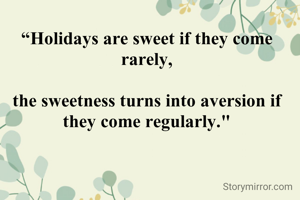 “Holidays are sweet if they come rarely, the sweetness turns into aversion if they come regularly."
