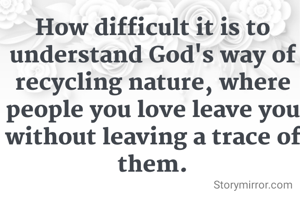 How difficult it is to understand God's way of recycling nature, where people you love leave you without leaving a trace of them.