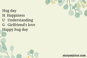 Hug day H Happiness U Understanding G Girlfriend's love Happy hug day