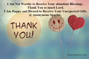 I Am Not Worthy to Receive Your abundant Blessings. Thank You so much Lord. I Am Happy and Blessed to Receive Your Unexpected Gifts. @ Anonymous Sparkle.