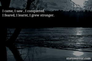 I came, I saw , I conquered. I feared, I learnt, I grew stronger.
