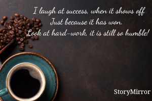I laugh at success, when it shows off Just because it has won. Look at hard-work, it is still so humble!