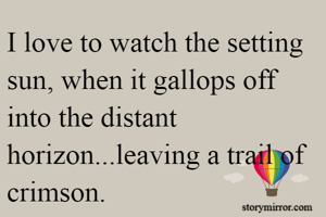 I love to watch the setting sun, when it gallops off into the distant horizon...leaving a trail of crimson.
