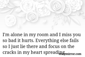 I'm alone in my room and I miss you so bad it hurts. Everything else fails so I just lie there and focus on the cracks in my heart spreading.
