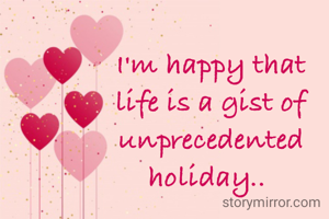 I'm happy that life is a gist of unprecedented holiday..