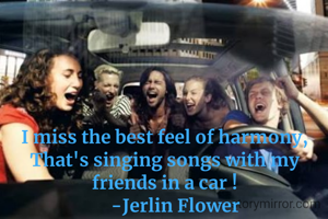 I miss the best feel of harmony, That's singing songs with my friends in a car ! -Jerlin Flower