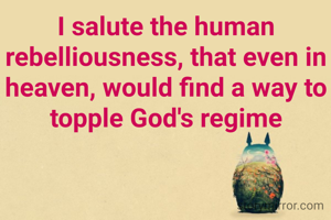 I salute the human rebelliousness, that even in heaven, would find a way to topple God's regime