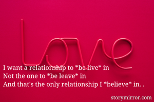 I want a relationship to *be live* in Not the one to *be leave* in And that's the only relationship I *believe* in. .