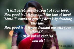 "I will celebrate the feast of your love, How good is it if you spill the jam of love? "Murali" wants to getting drunk by drinking this jam, How good is it if you drinked me with your hand?" -Dhanjibhai gadhiya " murali "