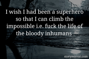 I wish I had been a superhero so that I can climb the impossible i.e. fuck the life of the bloody inhumans