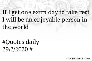 If I get one extra day to take rest I will be an enjoyable person in the world