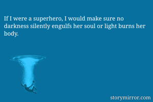 If I were a superhero, I would make sure no darkness silently engulfs her soul or light burns her body.