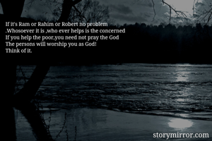 If it's Ram or Rahim or Robert no problem .Whosoever it is ,who ever helps is the concerned If you help the poor,you need not pray the God The persons will worship you as God! Think of it.