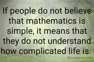If people do not believe that mathematics is simple, it means that they do not understand how complicated life is.