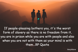 If people-pleasing bothers you, it's the worst form of slavery as there is no freedom from it, you are in prison while you are with people and also when you are not with them as your mind is with them...RP Quote