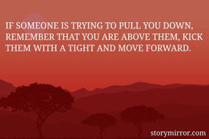 IF SOMEONE IS TRYING TO PULL YOU DOWN, REMEMBER THAT YOU ARE ABOVE THEM, KICK THEM WITH A TIGHT AND MOVE FORWARD.