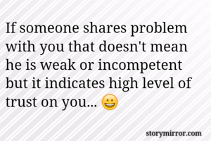 If someone shares problem with you that doesn't mean he is weak or incompetent but it indicates high level of trust on you... 😀