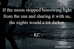 If the moon stopped borrowing light from the sun and sharing it with us, the nights would a lot darker. - KC -