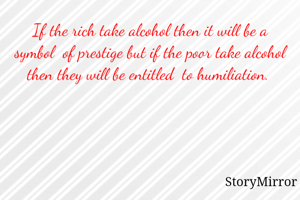If the rich take alcohol then it will be a symbol of prestige but if the poor take alcohol then they will be entitled to humiliation.