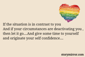 If the situation is in contrast to you And if your circumstances are deactivating you , then let it go....And give some time to yourself and originate your self confidence....