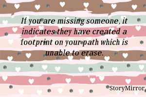 If you are missing someone, it indicates they have created a footprint on your path which is unable to erase.