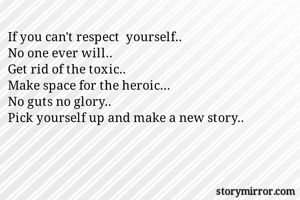 If you can't respect yourself.. No one ever will.. Get rid of the toxic.. Make space for the heroic... No guts no glory.. Pick yourself up and make a new story..