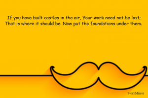 If you have built castles in the air, Your work need not be lost; That is where it should be. Now put the foundations under them.