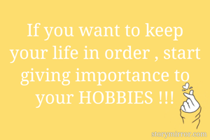 If you want to keep your life in order , start giving importance to your HOBBIES !!!