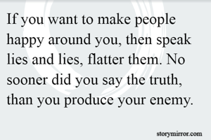 If you want to make people happy around you, then speak lies and lies, flatter them. No sooner did you say the truth, than you produce your enemy.