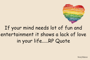 If your mind needs lot of fun and entertainment it shows a lack of love in your life.....RP Quote