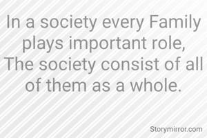 In a society every Family plays important role, The society consist of all of them as a whole.