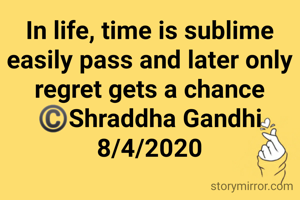 In life, time is sublime easily pass and later only regret gets a chance ©️Shraddha Gandhi 8/4/2020
