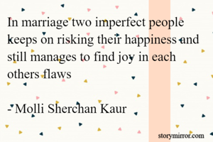 In marriage two imperfect people keeps on risking their happiness and still manages to find joy in each others flaws