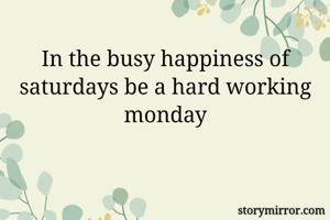 In the busy happiness of saturdays be a hard working monday