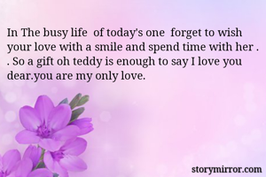In The busy life of today's one forget to wish your love with a smile and spend time with her . . So a gift oh teddy is enough to say I love you dear.you are my only love.