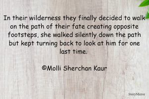 In their wilderness they finally decided to walk on the path of their fate creating opposite footsteps, she walked silently down the path but kept turning back to look at him for one last time.