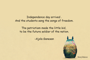 Independence day arrived . And the students sang the songs of freedom. The patriotism made the little kid, to be the future soldier of the nation. -Ajola Ganesan