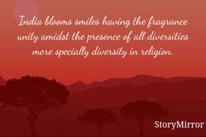 India blooms smiles having the fragrance unity amidst the presence of all diversities more specially diversity in religion.