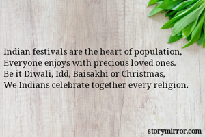 Indian festivals are the heart of population, Everyone enjoys with precious loved ones. Be it Diwali, Idd, Baisakhi or Christmas, We Indians celebrate together every religion.