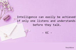 Intelligence can easily be achieved if only one listens and understands before they talk. - KC -