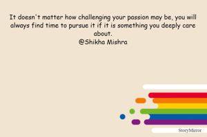 It doesn't matter how challenging your passion may be, you will always find time to pursue it if it is something you deeply care about. @Shikha Mishra